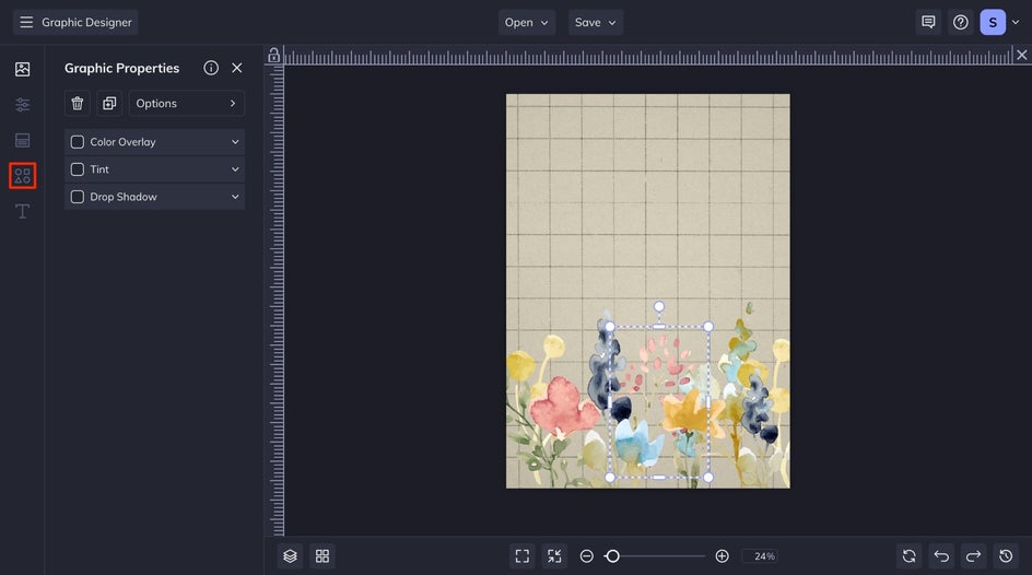 Adding vector graphics to your e-reader background is a great way to bring extra flair to your design. Head to the Graphics tab, where you’ll find a variety of vector illustrations in BeFunky’s Graphic Library to choose from, whether it’s delicate floral designs, celestial elements, or elegant borders. Simply search for a graphic that matches your vision, like “floral” or “stars,” and drag it onto your canvas.