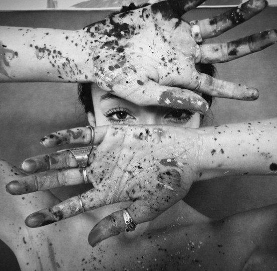 And then used the paint tool to go over her hands, bringing back all that gorgeous color as a focal contrast point. I highly suggest zooming in and adjusting the paint brush size often to ensure keeping it neat and tidy: