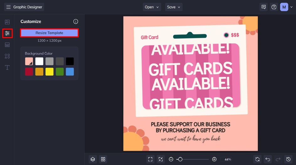 Now that you’ve got your design set, it’s time to resize it for another platform. Navigate to Customize in the main menu on the left, then click Resize Template.