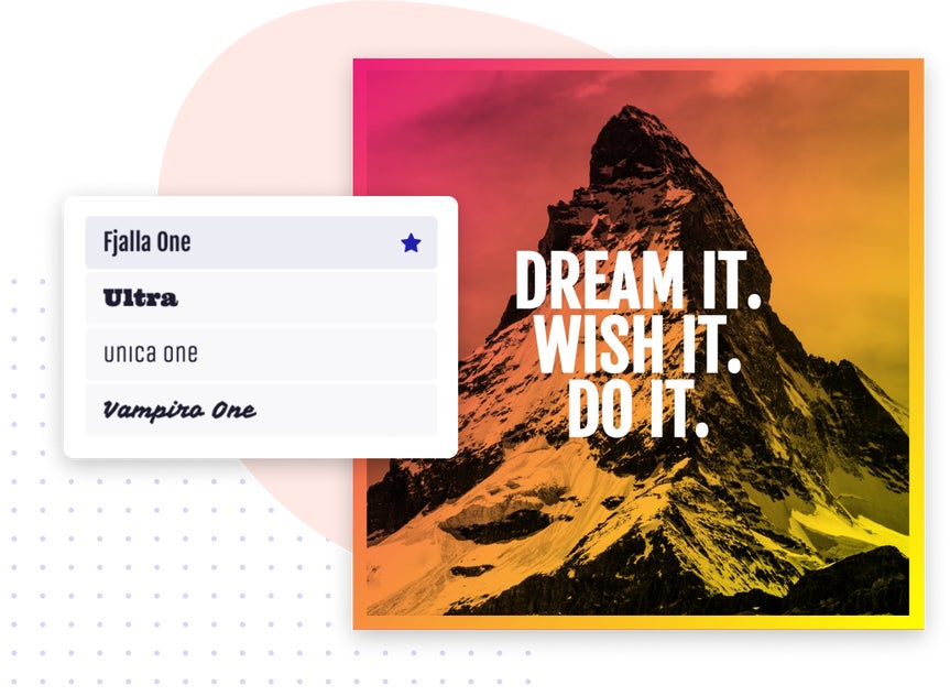 …sometimes you want a couple more! If this is the case, our editor has you covered. Easily add text with pretty much any font you could want. Add your own fonts, choose from our vast library, or pull from Google fonts right in the built-in font manager. Add in some graphics to make your text stand out, or get really creative and fill your text with an image! If you want to take your design to the next level, you can use our Graphic Designer tool to easily create elaborate designs with your photos, text, graphics, and other visual elements.