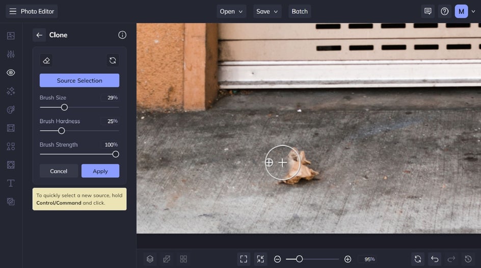 We’ve also developed an A.I.-powered Object Eraser which does all of the hard work for you when it comes to removing unwanted objects from your photo. You can learn about the differences between the Object Eraser and Clone tool in this article.