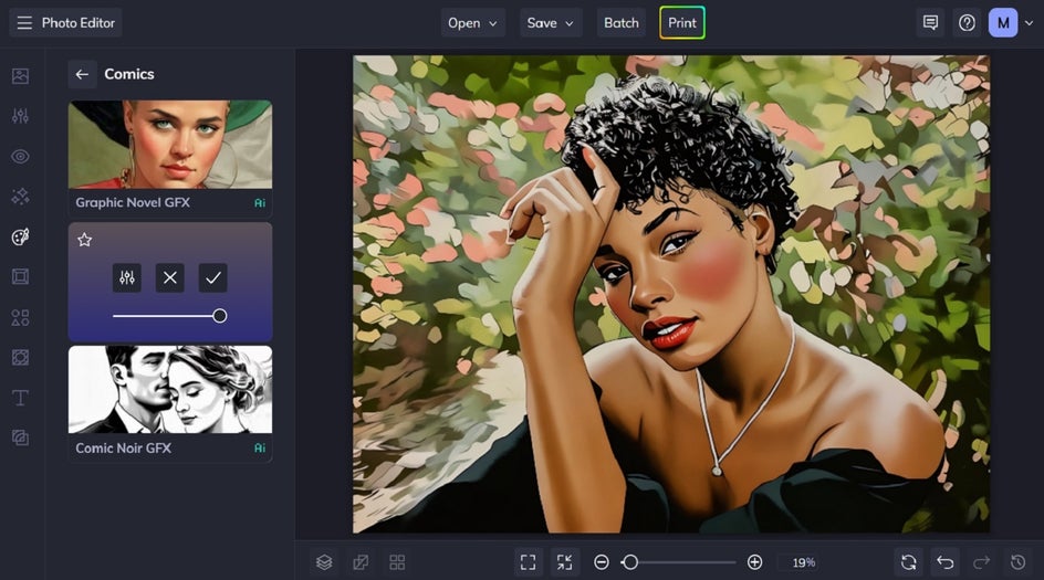 Ready to add a vintage cartoon style to your photo? Head to the Comics section of the Photo Editor and open the image you wish to turn into a vintage illustration.
