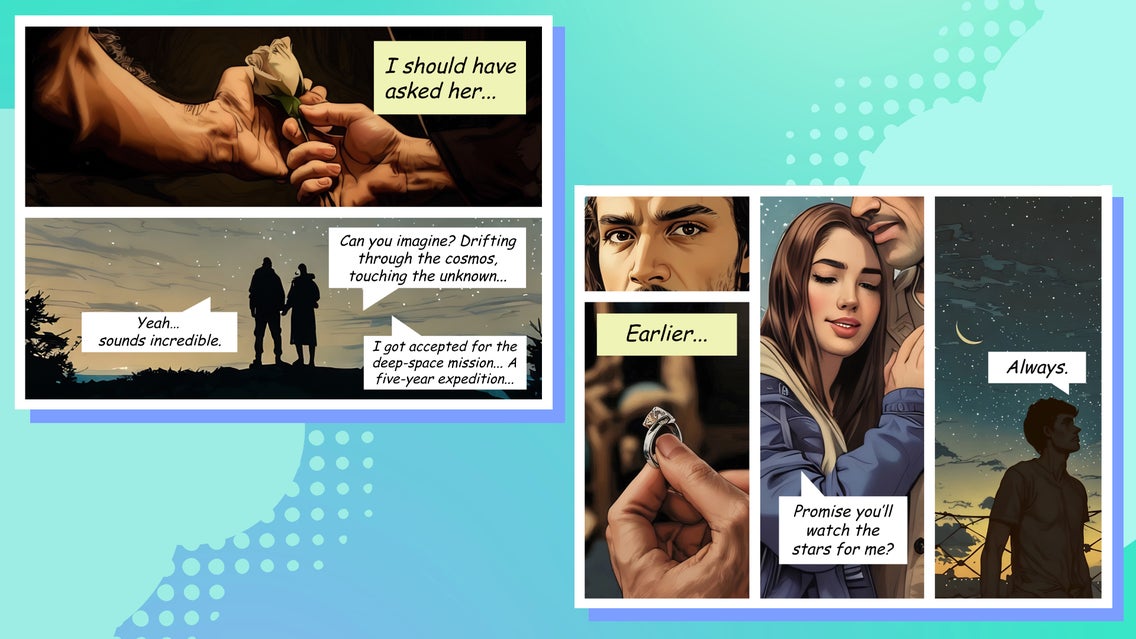 One of the biggest challenges is arranging your images and text in a way that enhances readability while keeping the visuals exciting, so be mindful of this when arranging your word bubbles.
