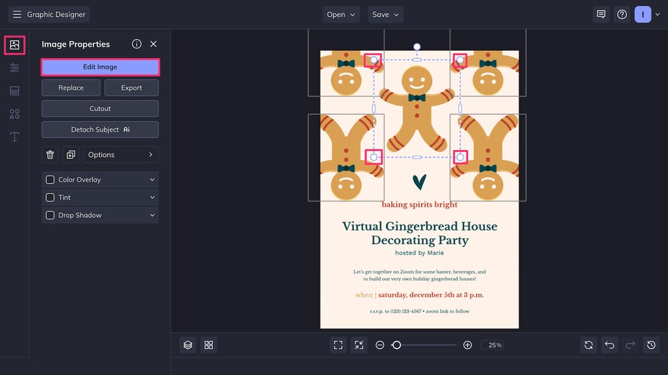 Add the graphic from your Image Manager back to your canvas. Resize and position it to your liking, then click it and choose the Edit Image button.