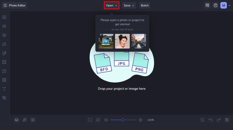 The Background Remover is another great option for removing the background from an image online. Again, this can be achieved in the Photo Editor. Head there, then open the image you wish to cut out to begin.